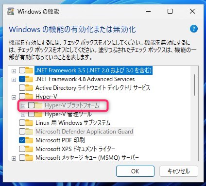 ゲストOS(仮想化した側)のWindows11で仮想環境が使えるか確認します。