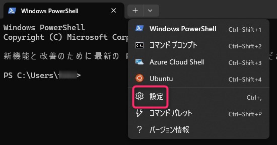 このメニューの「設定」-「プロファイル」-「Windows PowerShell」-「このプロファイルを管理者として実行する」を有効にして保存すれば次回起動時に管理者モードで起動します。設定を戻すには設定を戻してください。