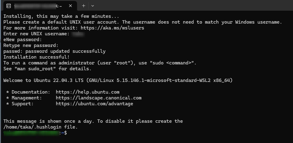 これで仮想Windows11のWSLでUbuntuが使える、入れ子の入れ子状態となりました。