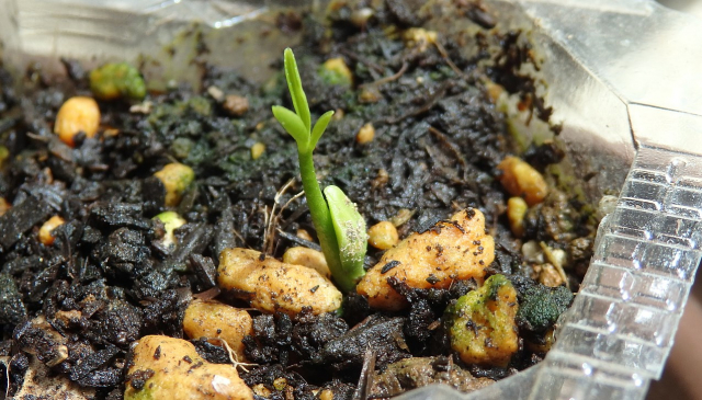播いたタネすべてが発芽するのは難しい様で、20粒播いて4つの発芽を確認しています。