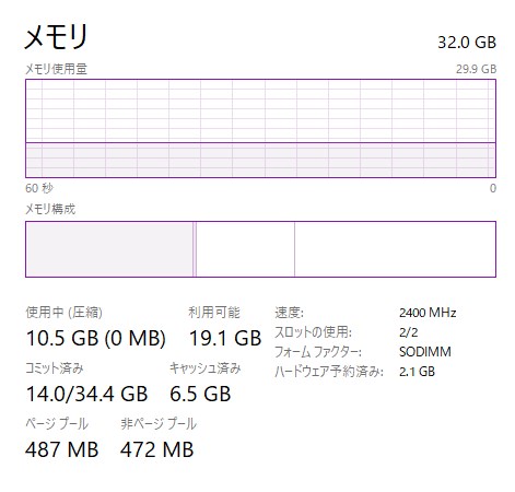 そんな最中、PCを新調した際に「どうせだし」と何も考えずメモリ搭載量を32GBにしてみたんです。