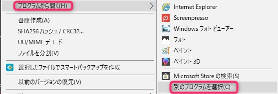 レジストリの設定が終わったら画像ファイルを右クリックしてコンテキストメニューを呼び出したら、「プログラムからから開く」-「別のプログラムを選択」をクリックします。