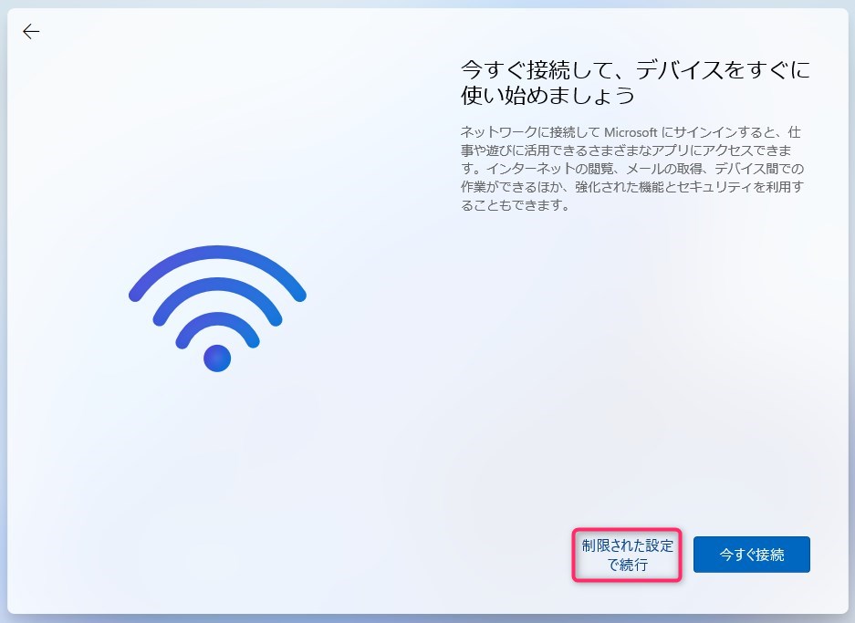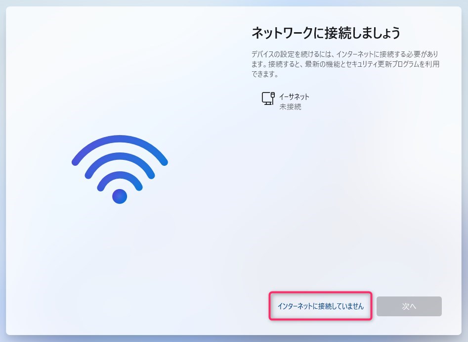 [インターネットに接続していません]を押して、オフラインでセットアップ