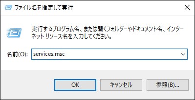 サービスの動作を変更するにはキーボードにあるWindowsの旗を押しながら「R」キーを押すと表示される「ファイル名を指定して実行」の名前欄に「services.msc」と入力してOKボタンをクリックします。