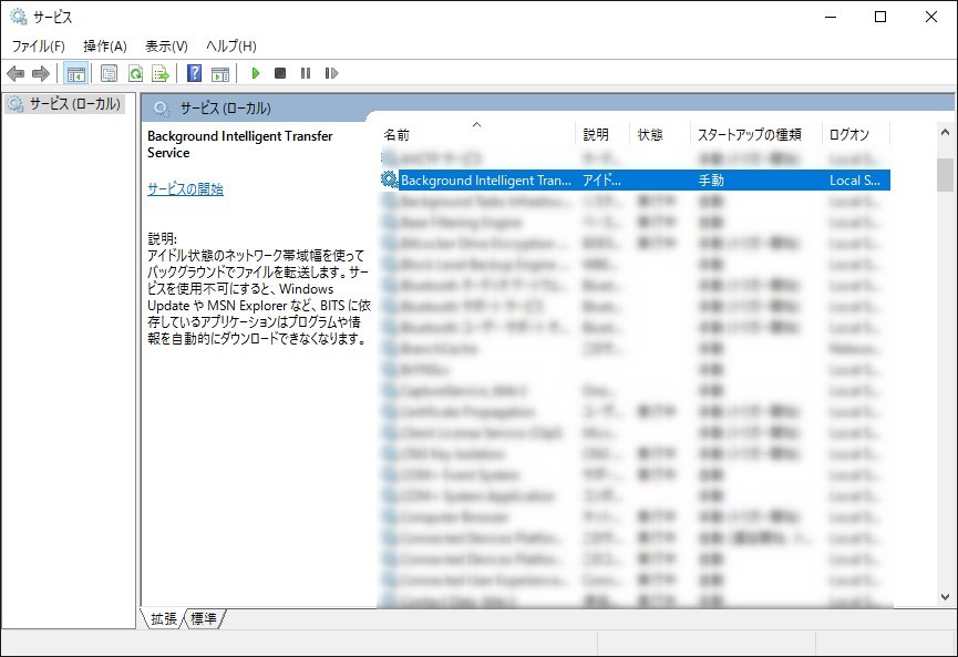 するとサービスが起動するのでまず「Background Intelligent Transfer Service」を探します。見つけたらダブルクリックして下さい。